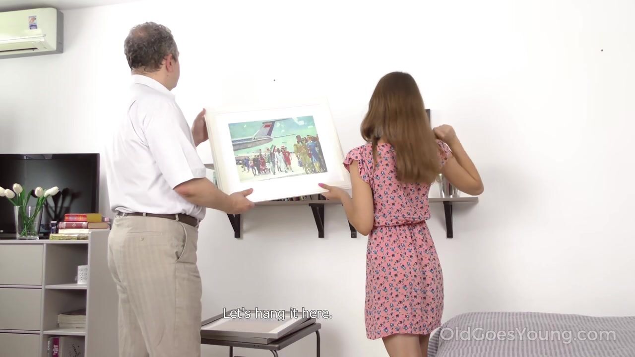 Horny young girl with perfect tits and huge natural boobs gets drilled by an old man